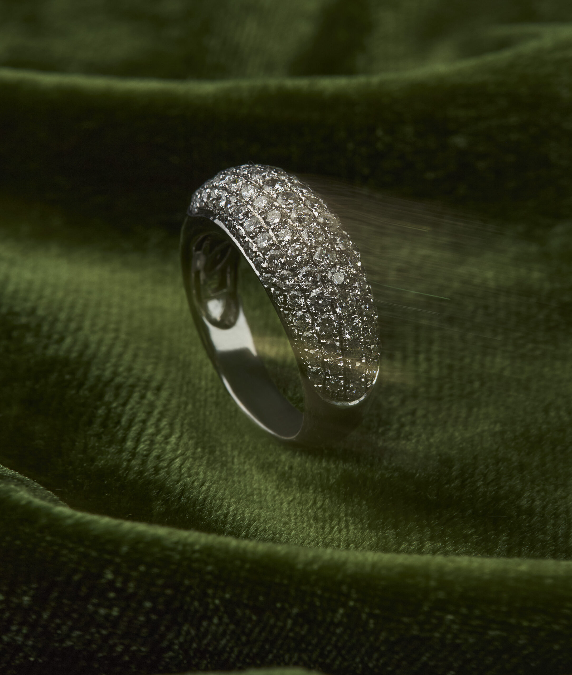 “HELENA” RING – 18k white gold band with pavé-set white diamonds.