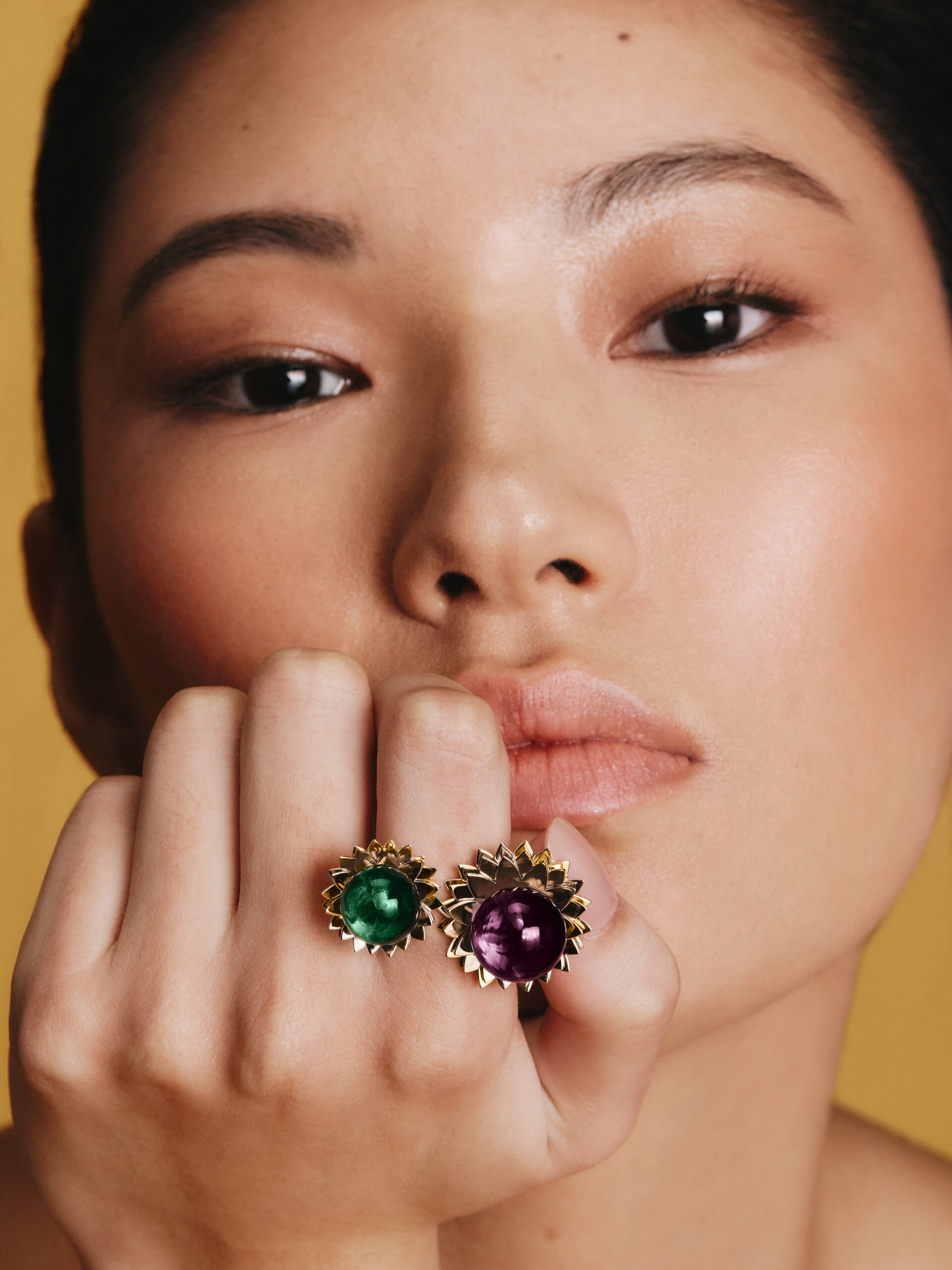 “BROMELIA DUO” RING – AMETHYST, GREEN TOURMALINE AND 18K YELLOW GOLD