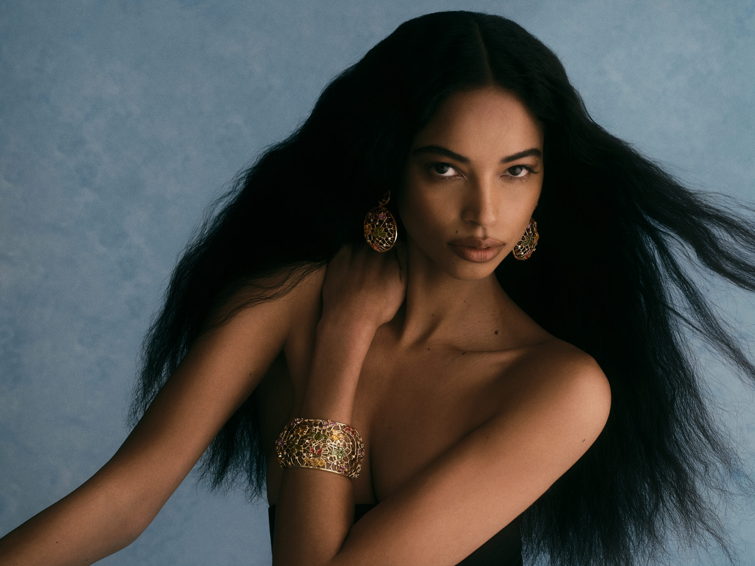 The gesture of the goldsmiths merges with that of nature: jewels that do not weigh when worn, yet carry impact and presence. True luminous second skins.