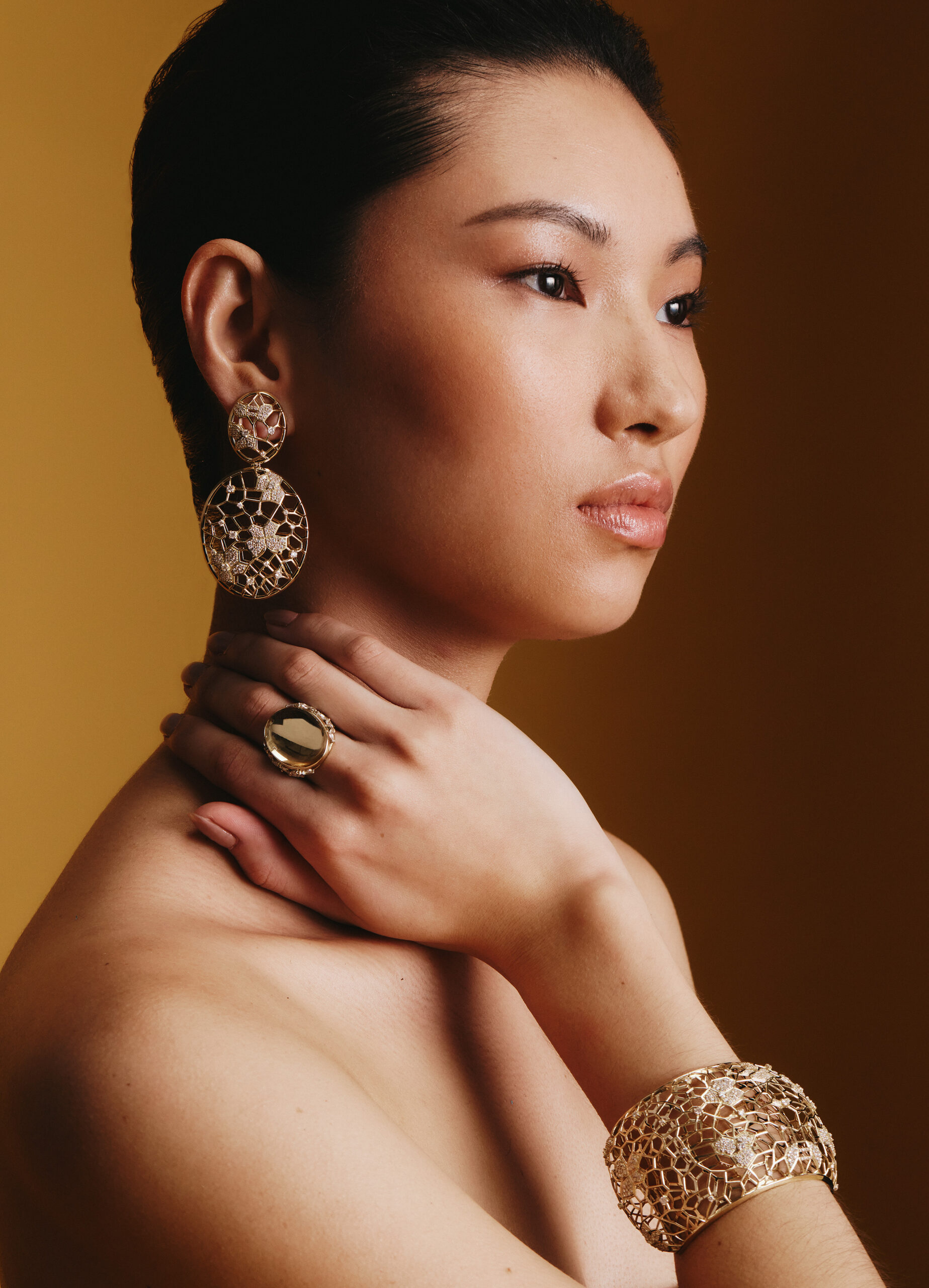 O forro, acabamento secreto, acrescenta peso e presença, ao mesmo tempo em que confere a ilusão de continuidade infinita: um bracelete sem começo e sem fim, como o ciclo eterno da vida.
